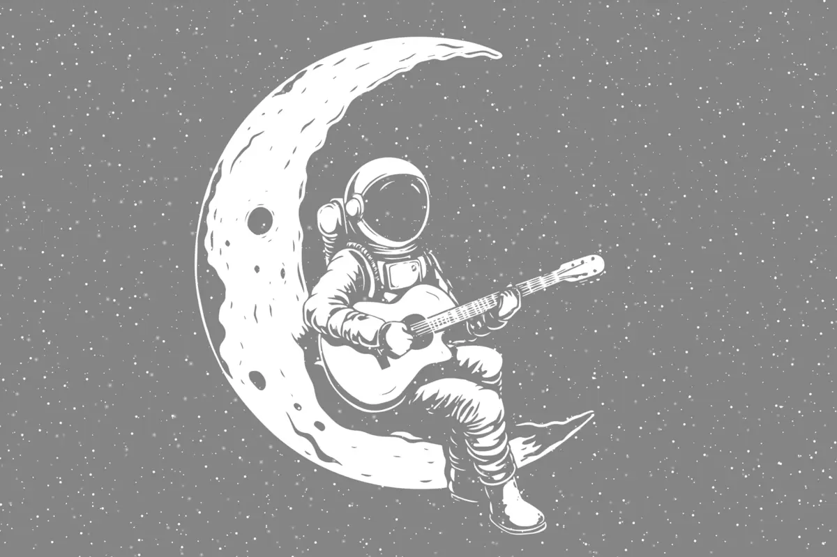 Murais de parede Cosmonauta, lua, violão Nr. w04514