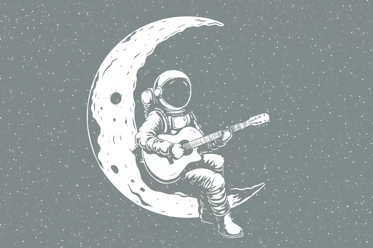 Murais de parede Cosmonauta, lua, violão Nr. w04514v1