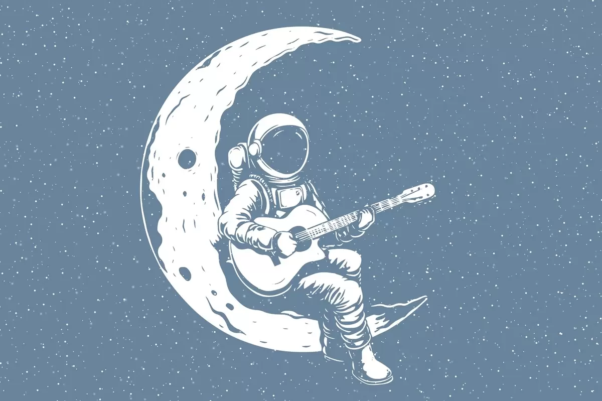 Murais de parede Cosmonauta, lua, violão Nr. w04514v2