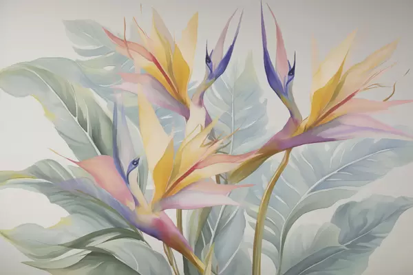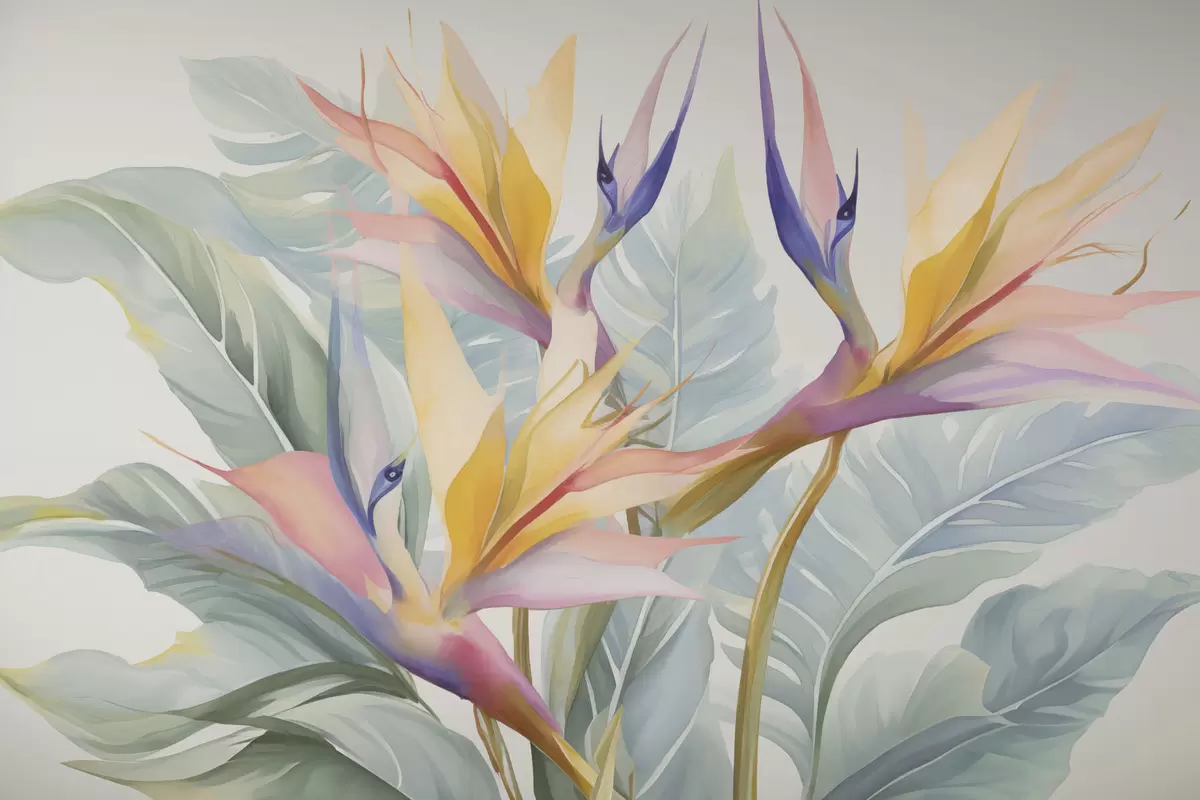 Murais de parede Flores e folhas de Strelitzia Nr. w04527