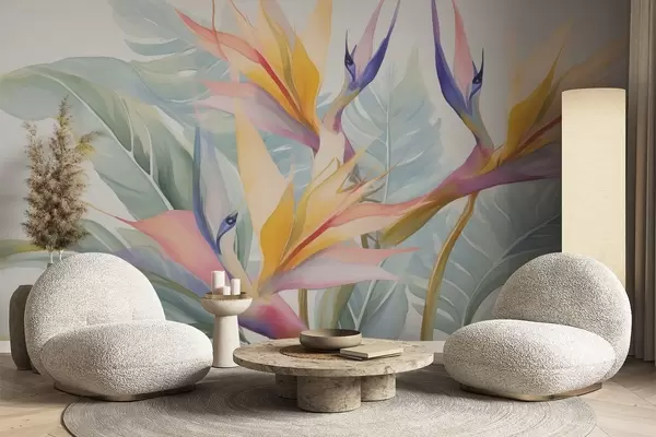 Murais de parede Flores e folhas de Strelitzia Nr. w04527