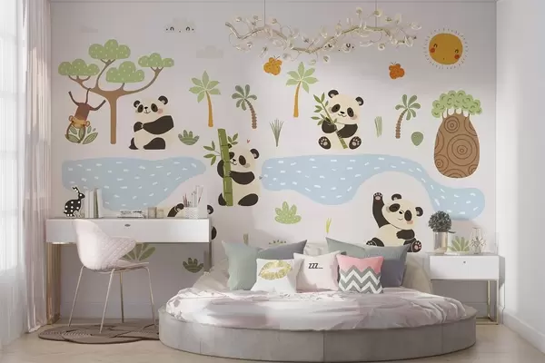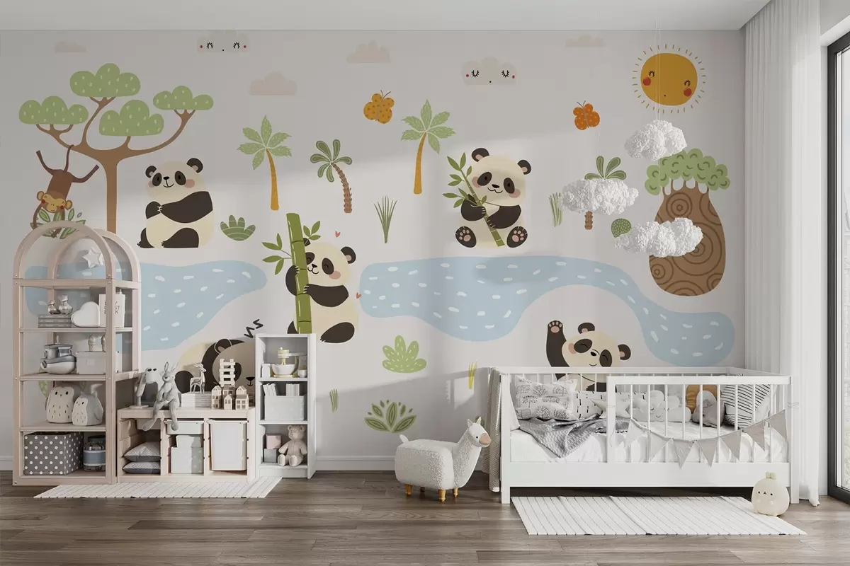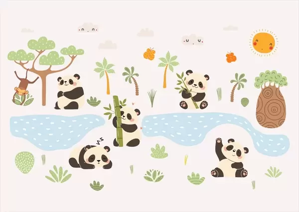 Murais de parede Pandas alegres à beira do rio Nr. w04541