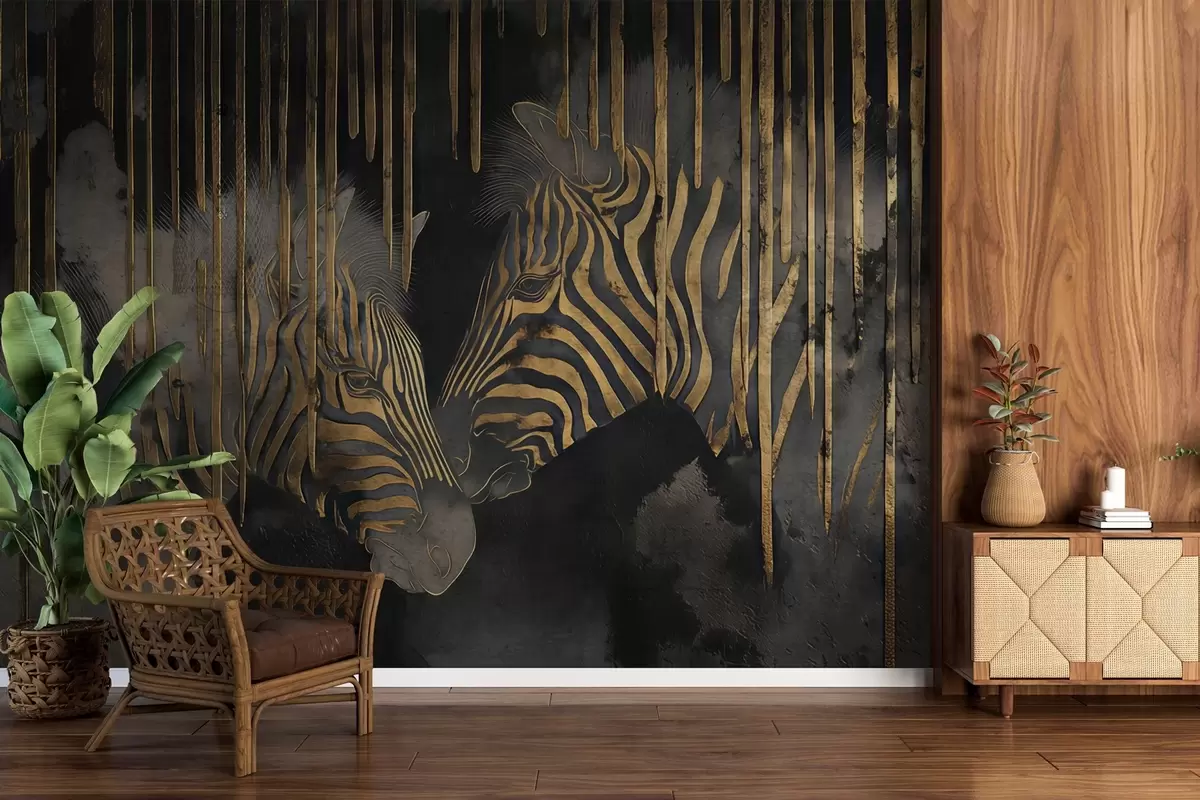 Murais de parede Zebras com fundo preto abstrato Nr. w04548