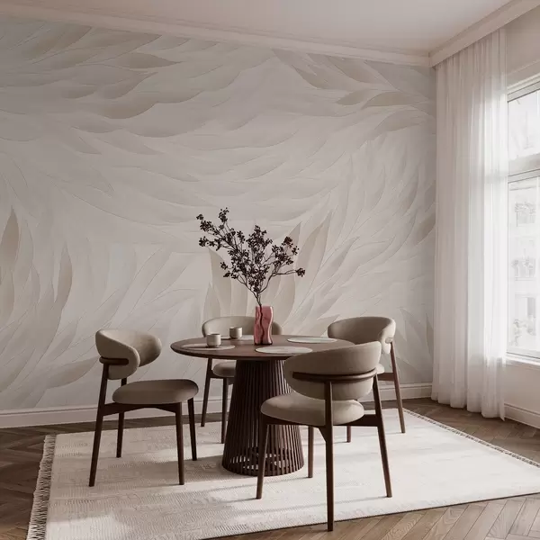 Murais de parede Folhas onduladas em tons suaves de creme Nr. w04610