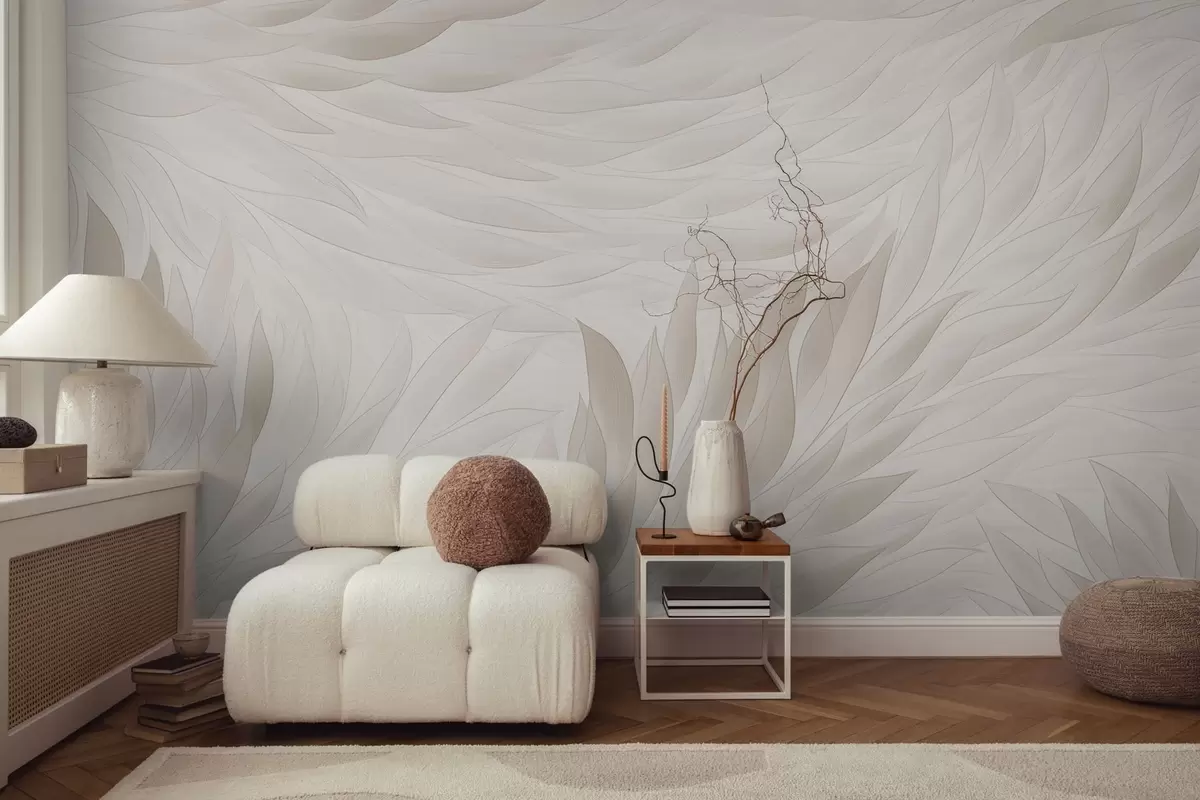 Murais de parede Folhas onduladas em tons suaves de creme Nr. w04610
