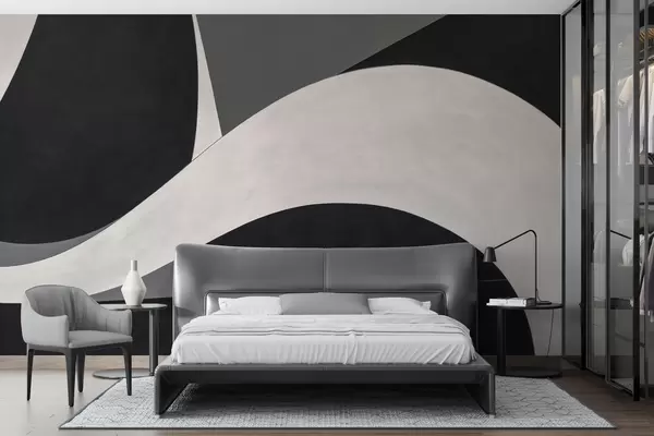 Murais de parede Abstração em preto e cinza com uma onda suave Nr. w04615