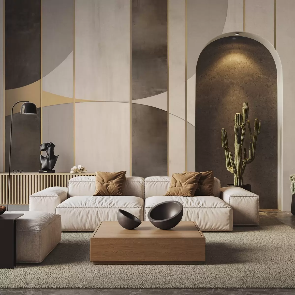 Murais de parede Painéis geométricos com arcos e detalhes em champanhe Nr. w04616