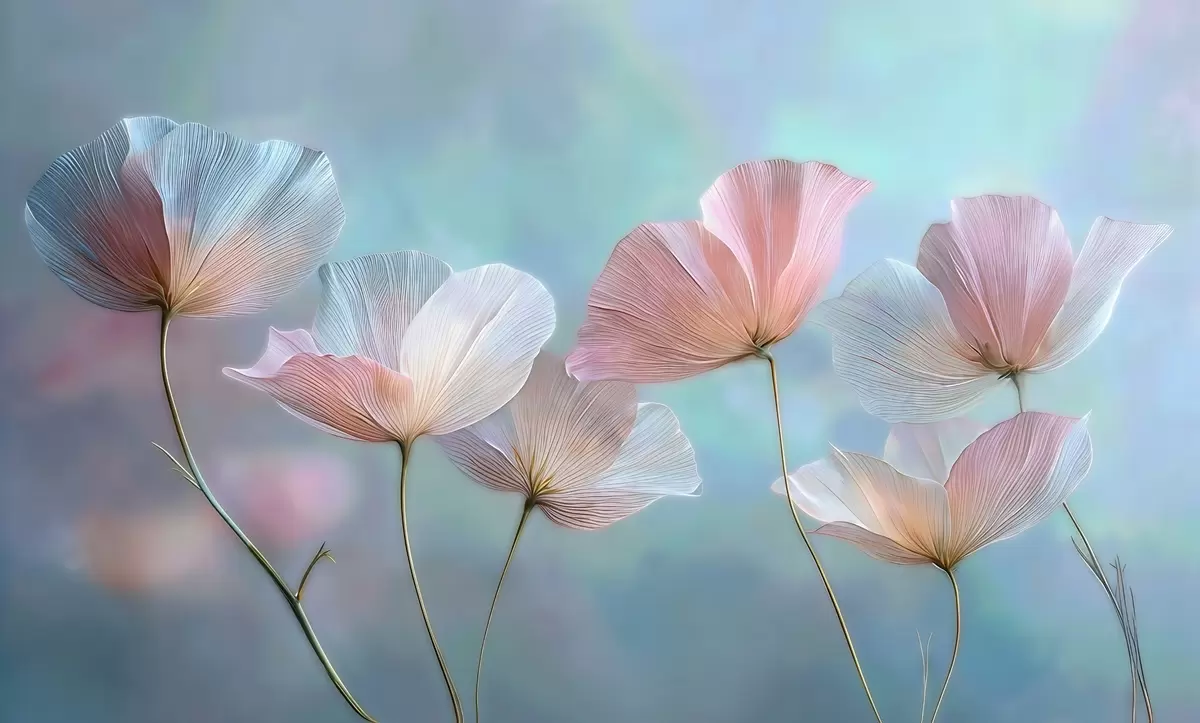 Murais de parede Pétalas transparentes em tons pastel de rosa e azul Nr. w04621