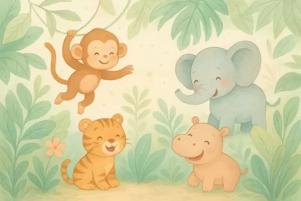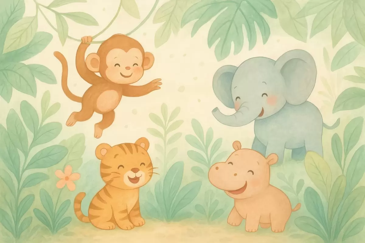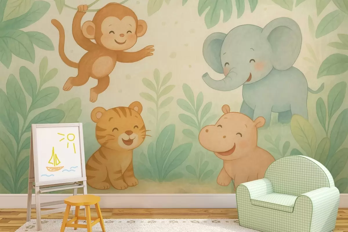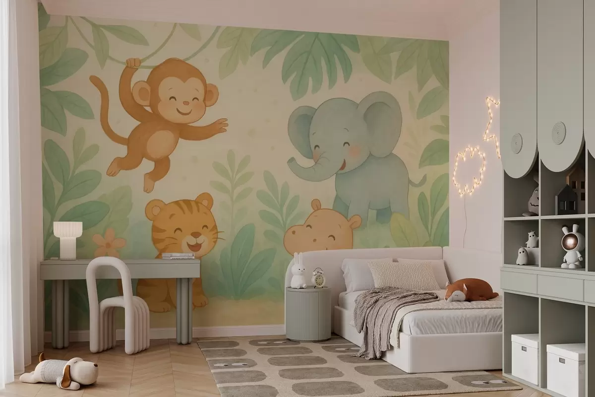 Murais de parede animais bebês fofos na selva Nr. w04622