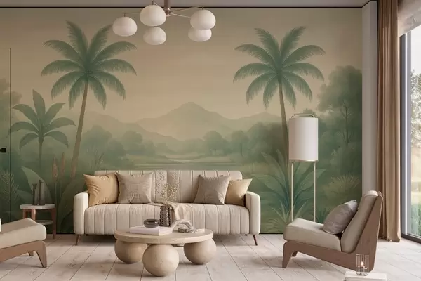Murais de parede paisagem tropical com palmeiras e um rio Nr. w04623