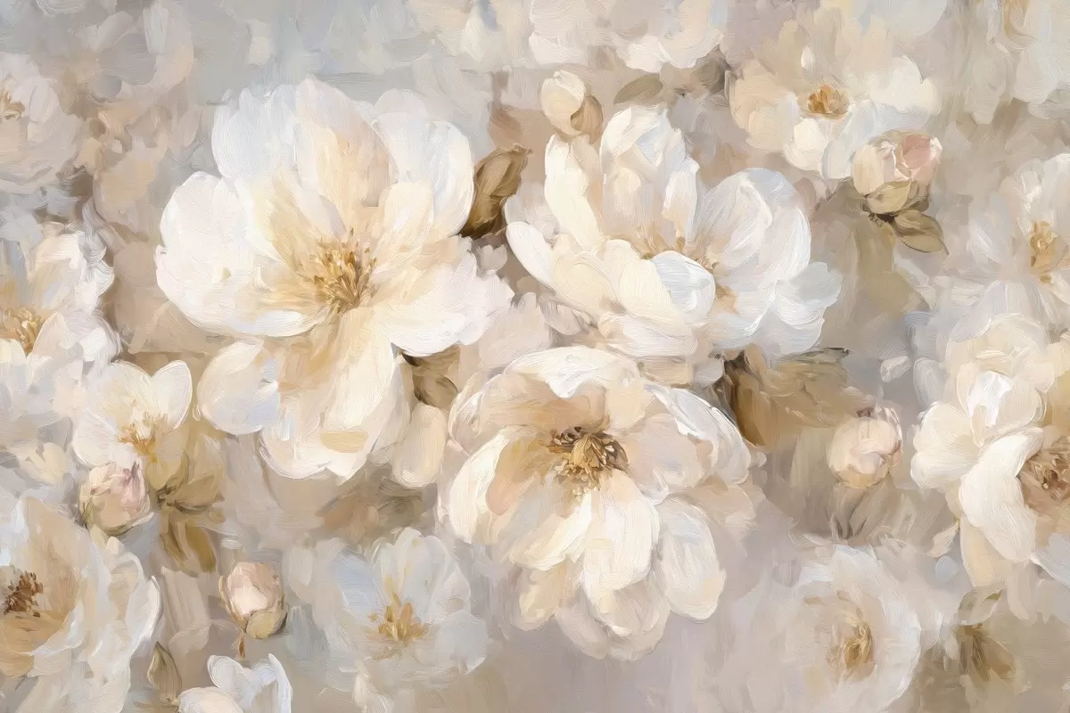 Murais de parede flores grandes em tons de branco e bege no estilo da pintura a óleo Nr. w04633