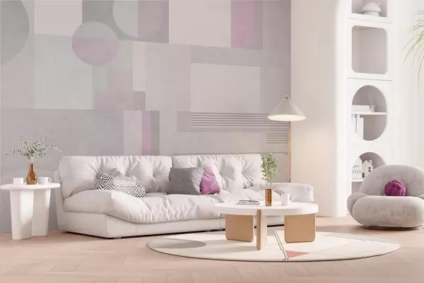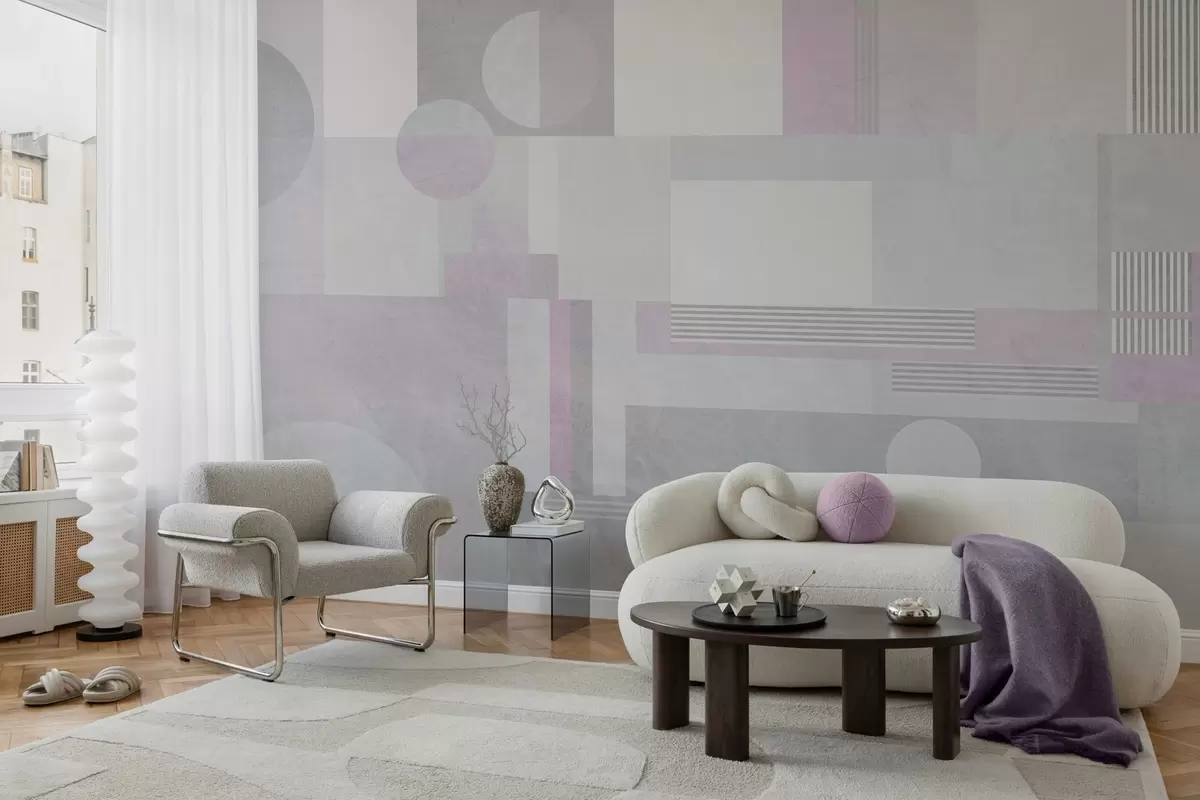 Murais de parede geometria abstrata em tons de cinza e lavanda Nr. w04635v1