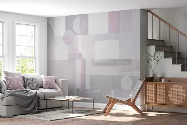 Murais de parede geometria abstrata em tons de cinza e lavanda Nr. w04635v1