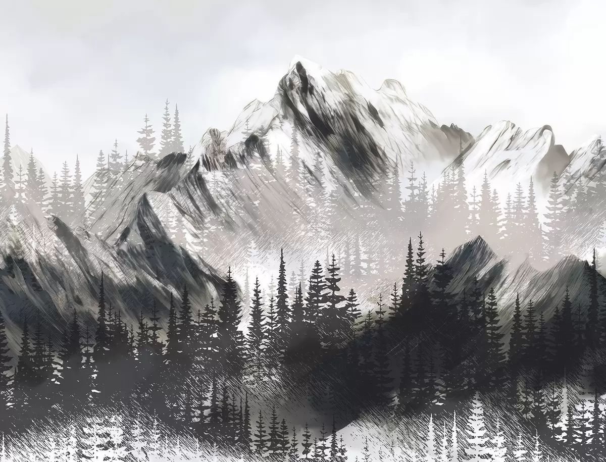 Murais de parede Montanhas e floresta de coníferas Nr. w04666