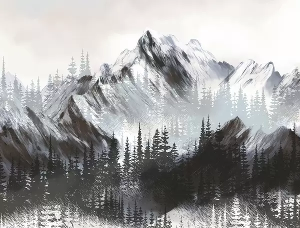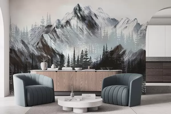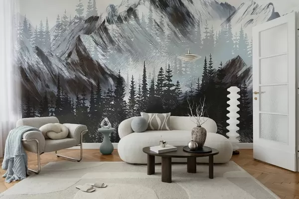 Murais de parede Montanhas e floresta de coníferas Nr. w04666v1