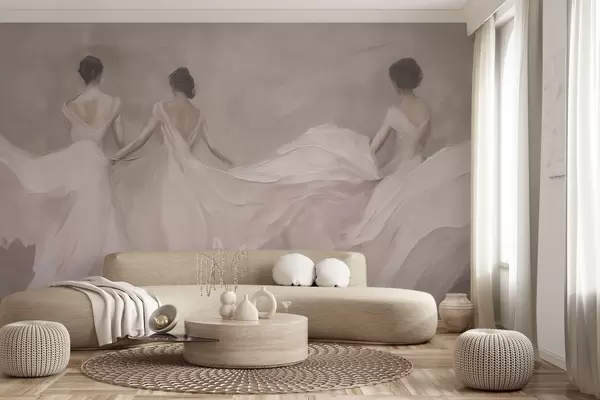 Murais de parede Três mulheres em vestidos cor-de-rosa, tecido esvoaçante, suavidade Nr. w04709