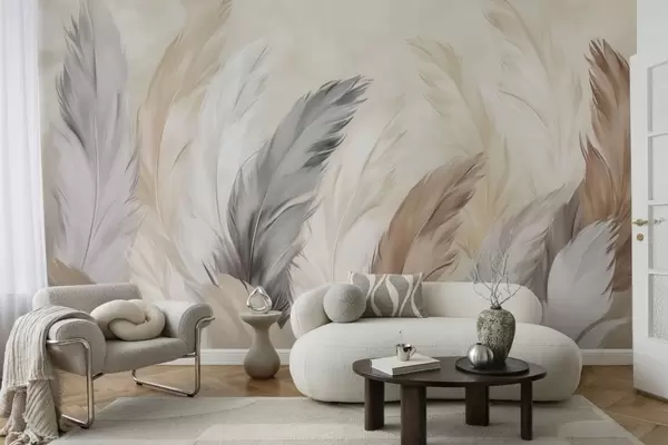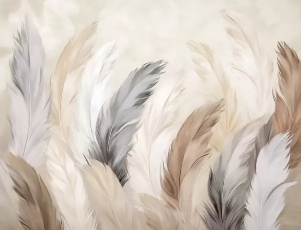 Murais de parede Penas macias e fofas em uma paleta neutra e aconchegante Nr. w04736