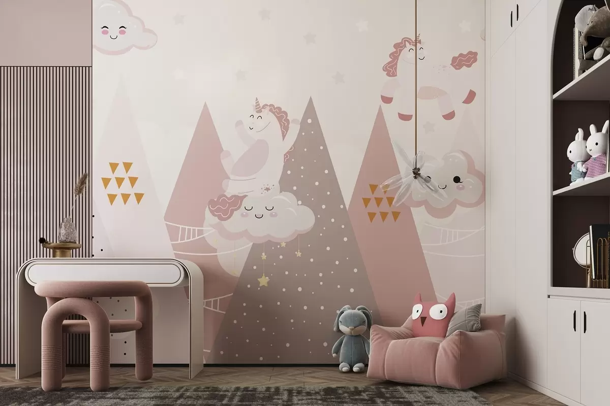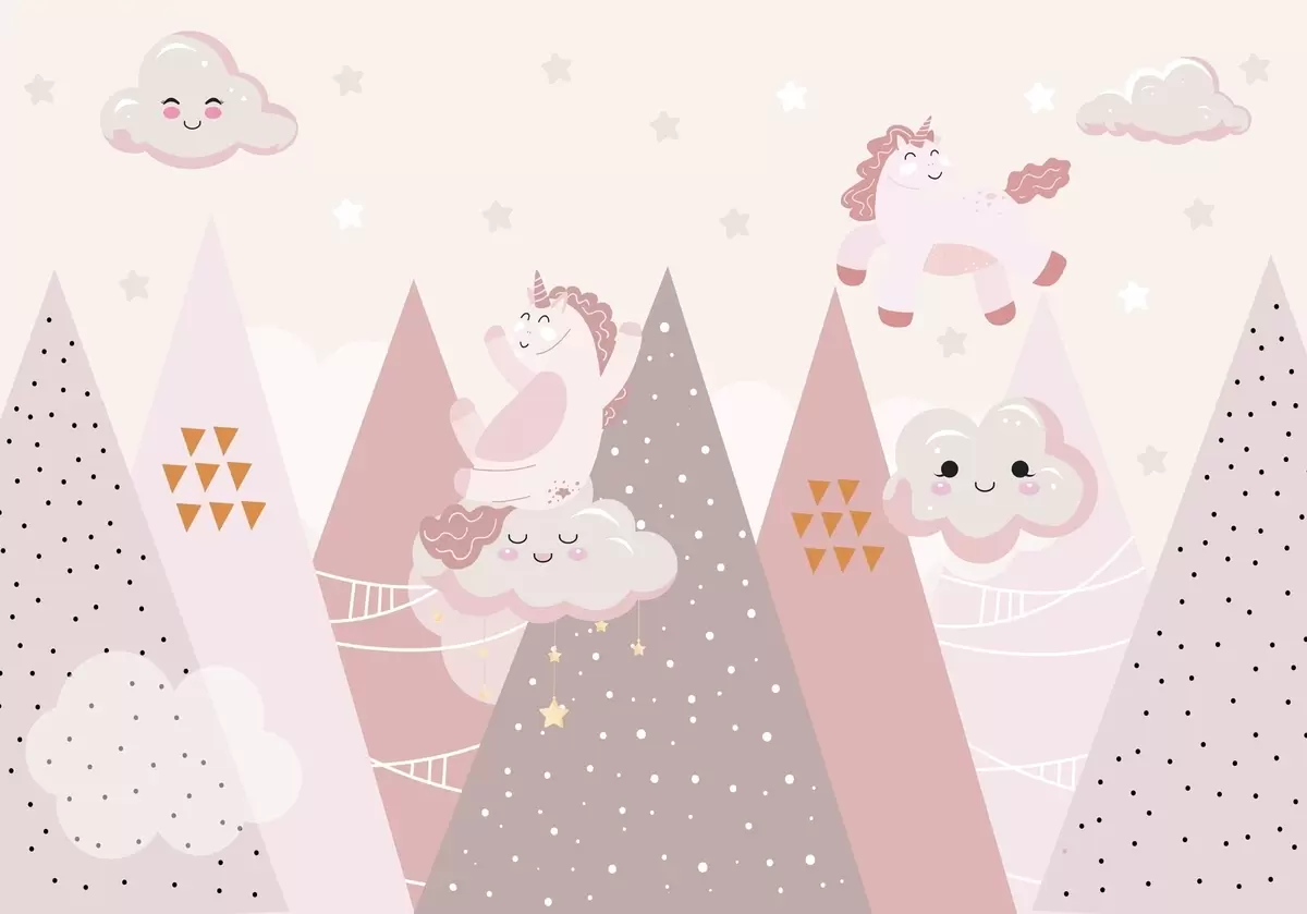 Murais de parede Pônei nas montanhas com nuvens Nr. w04741
