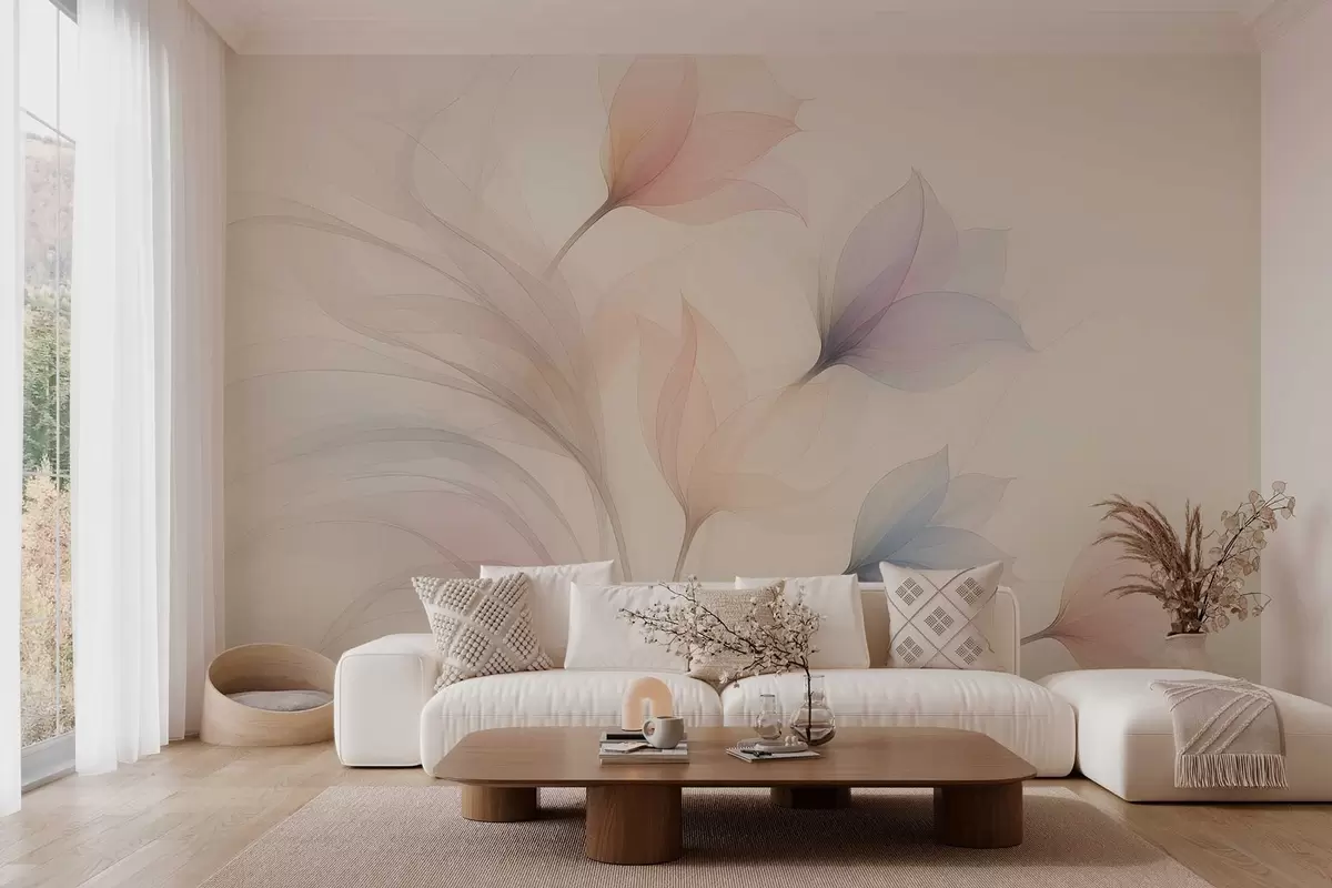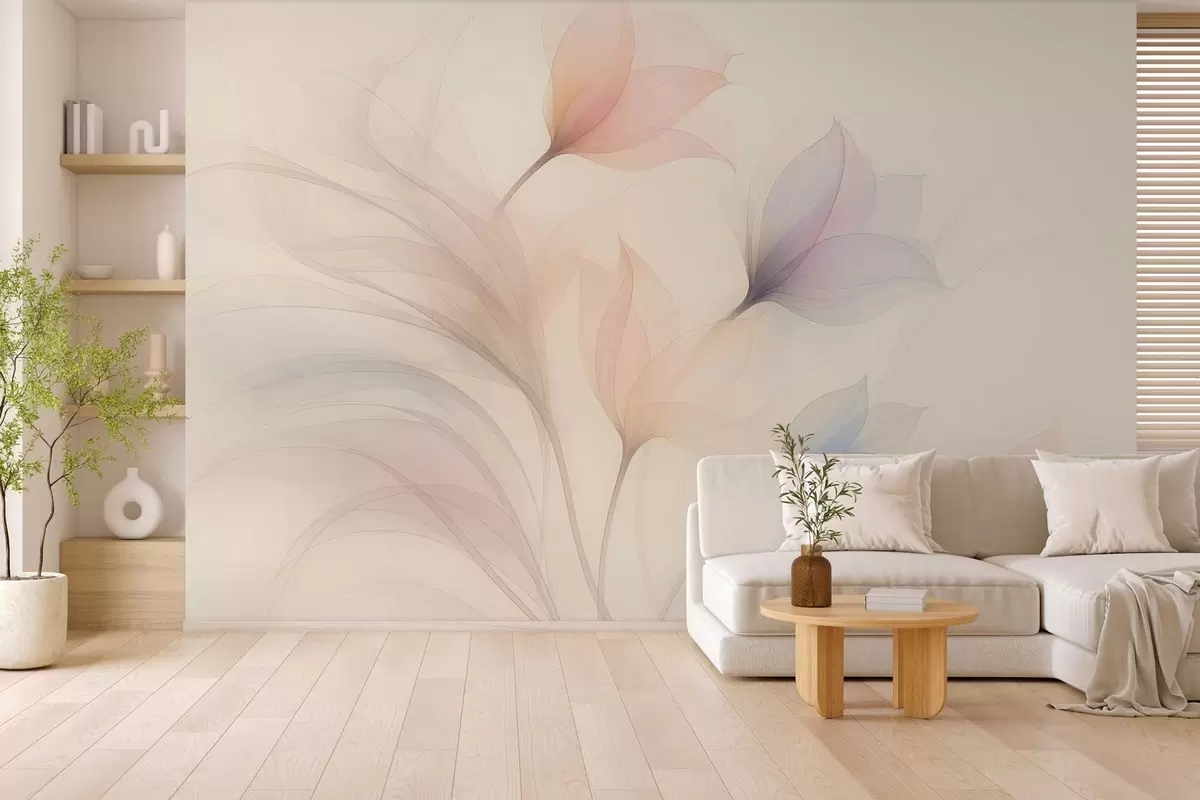 Murais de parede delicadas tulipas semitransparentes sobre fundo bege Nr. w04754