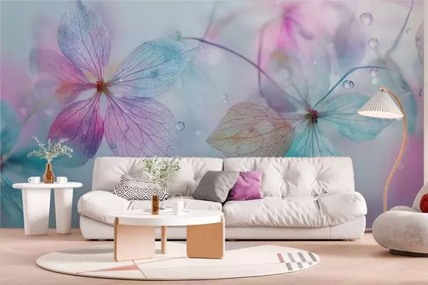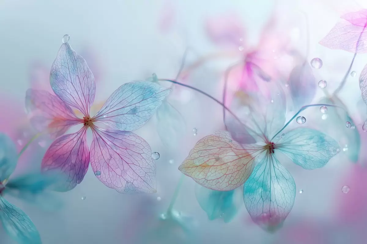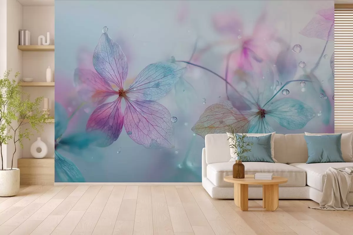 Murais de parede flores delicadas com veias sob a água Nr. w04809