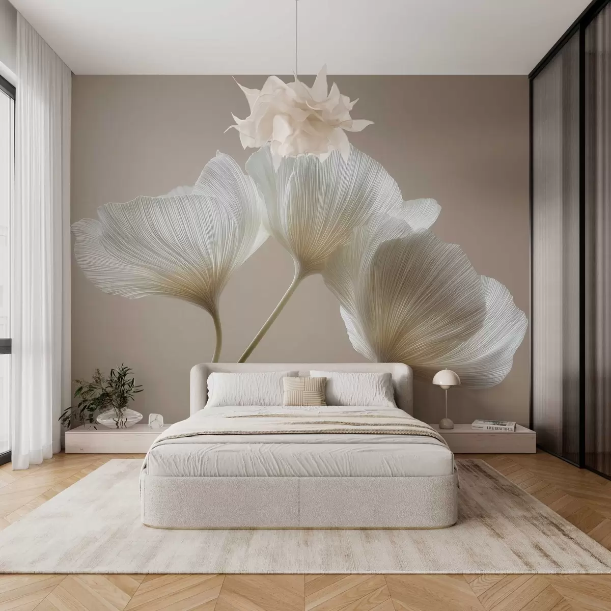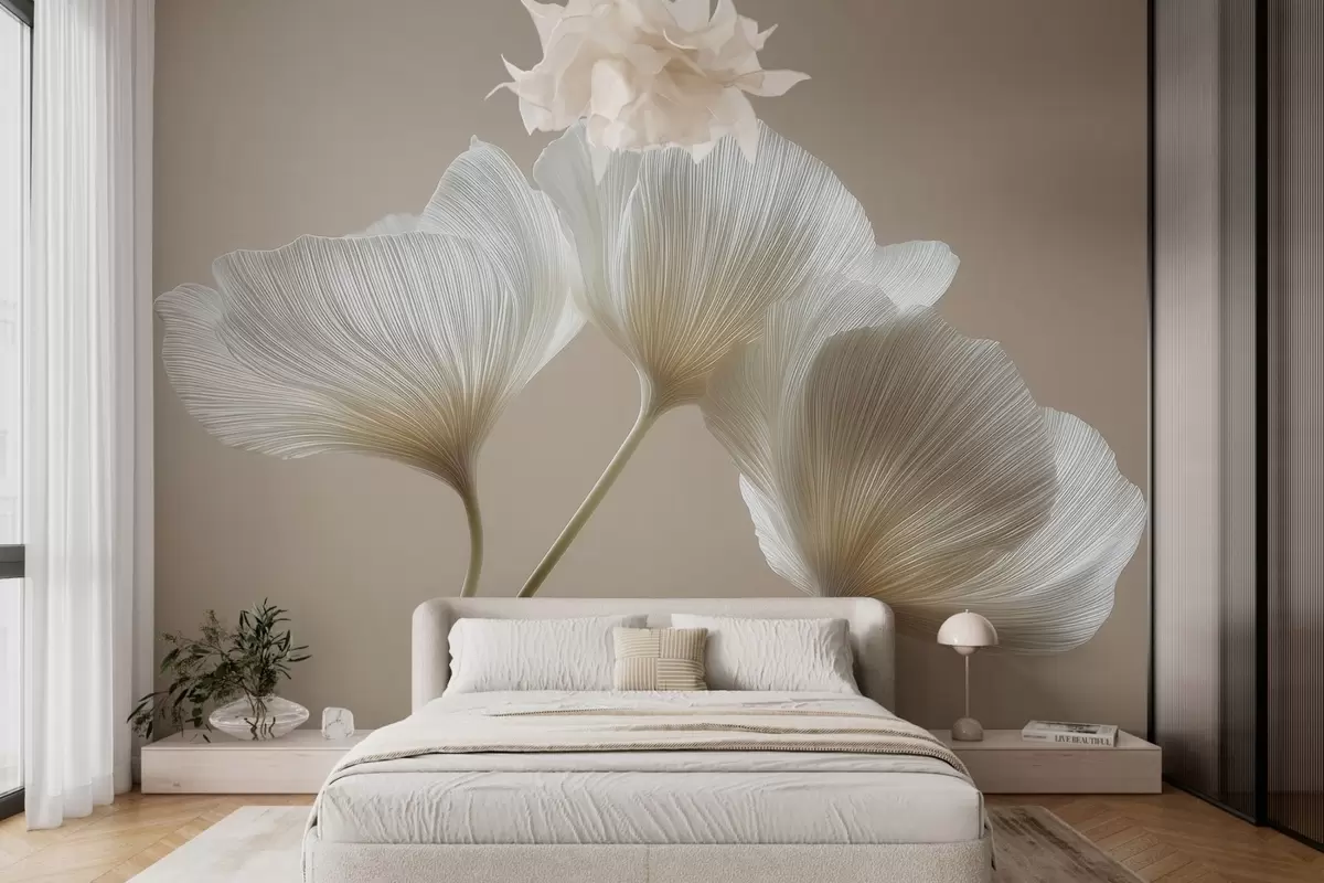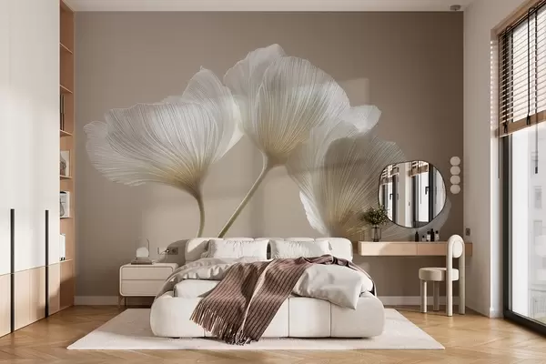 Murais de parede três delicadas flores sobre um fundo bege Nr. w04810