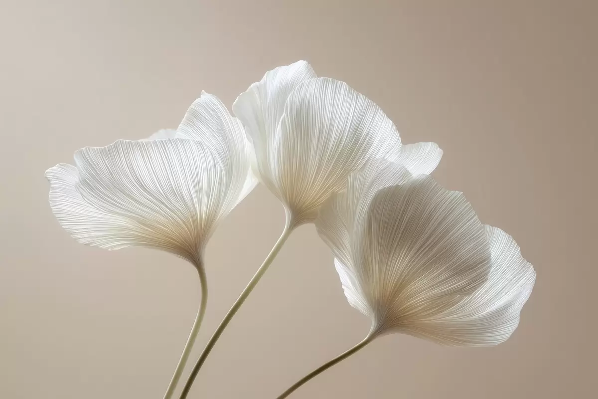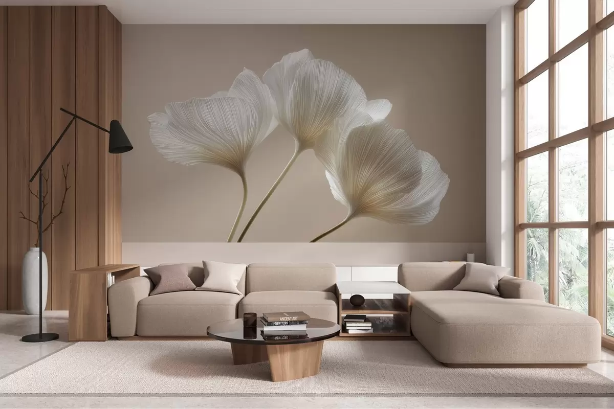 Murais de parede três delicadas flores sobre um fundo bege Nr. w04810