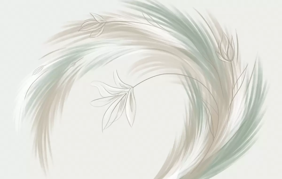 Murais de parede penas e flores verdes e bege, pintadas à mão Nr. w04816