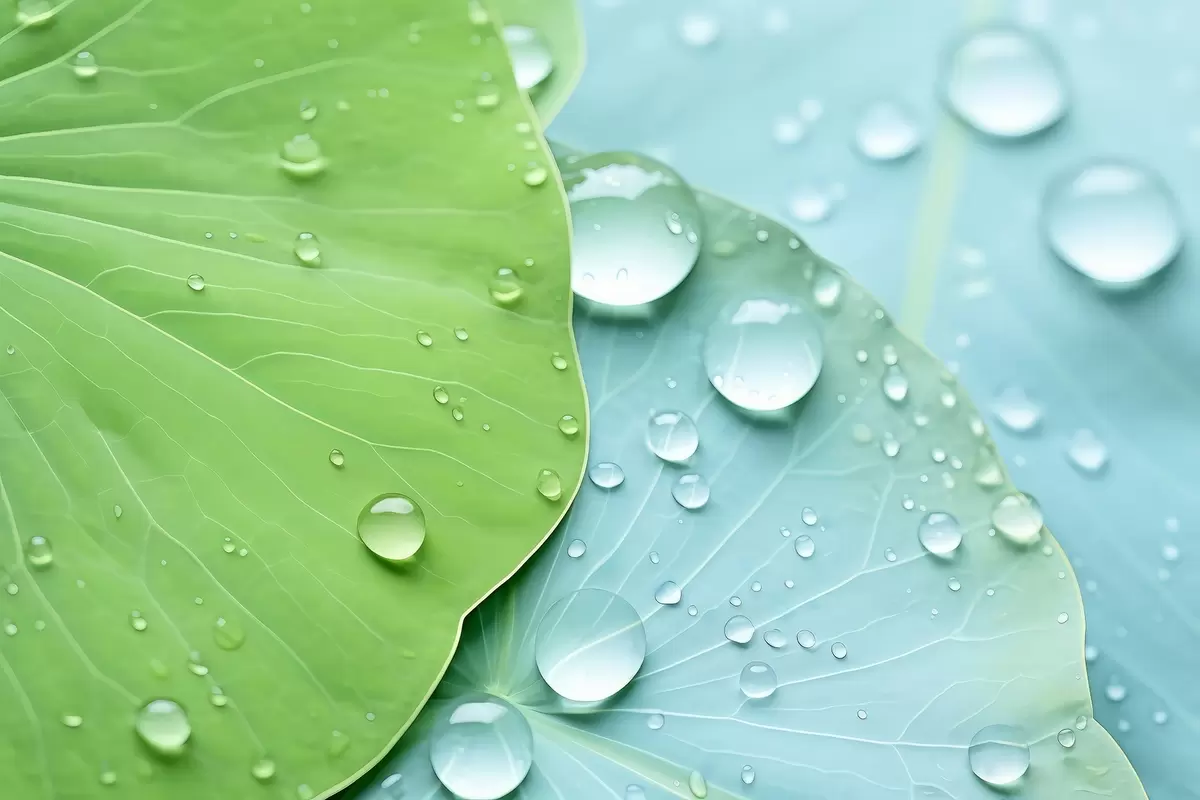 Murais de parede Gotas de água nas folhas, aquarela macro Nr. w04838