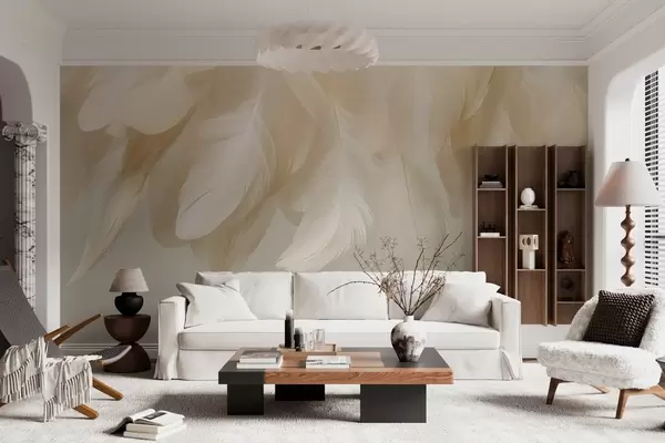 Murais de parede Penas pendentes exuberantes e delicadas em tons suaves Nr. w04842