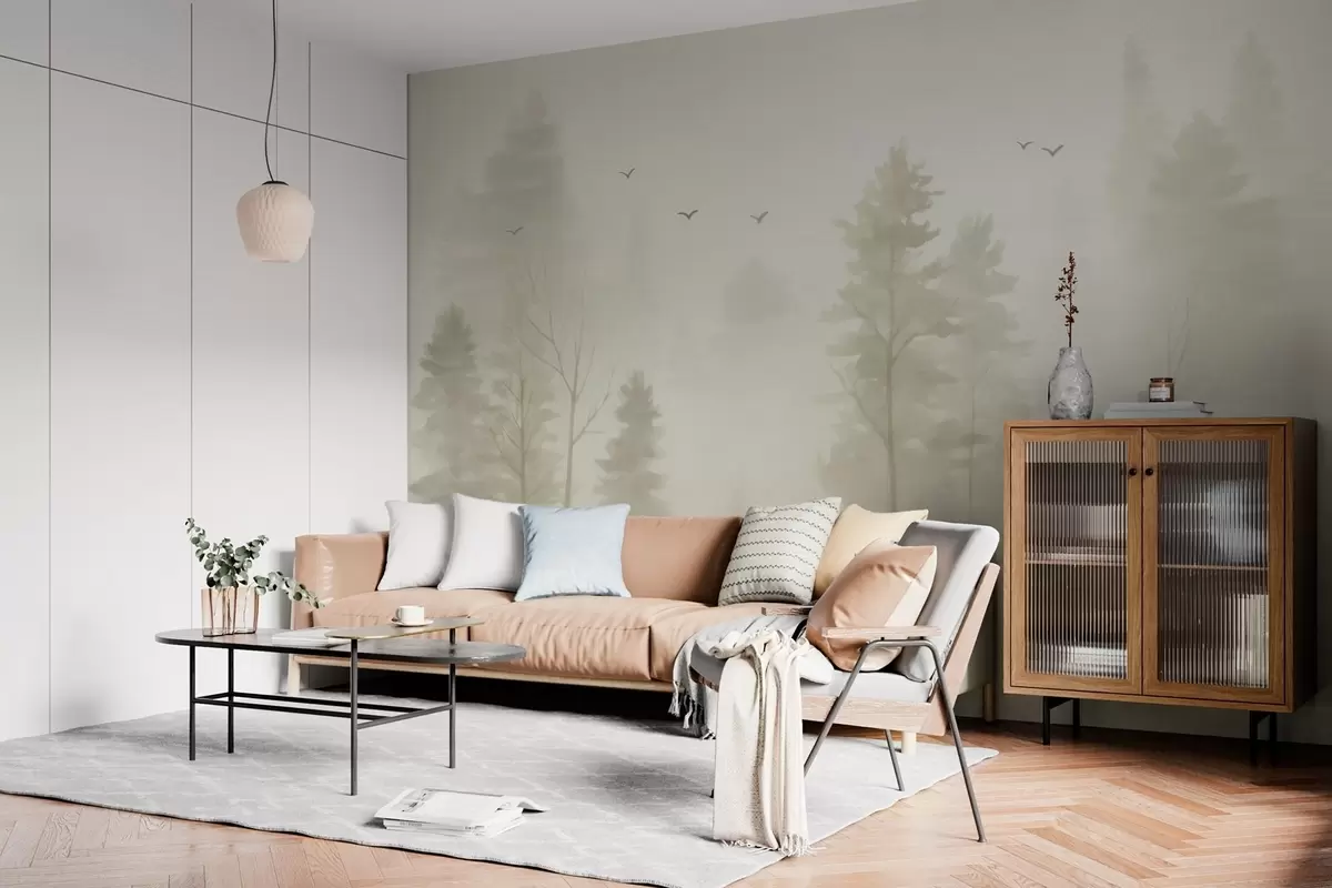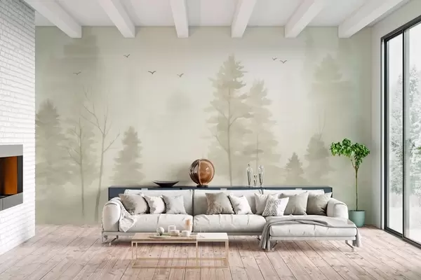 Murais de parede floresta aérea em estilo aquarela em tons de bege Nr. w04872