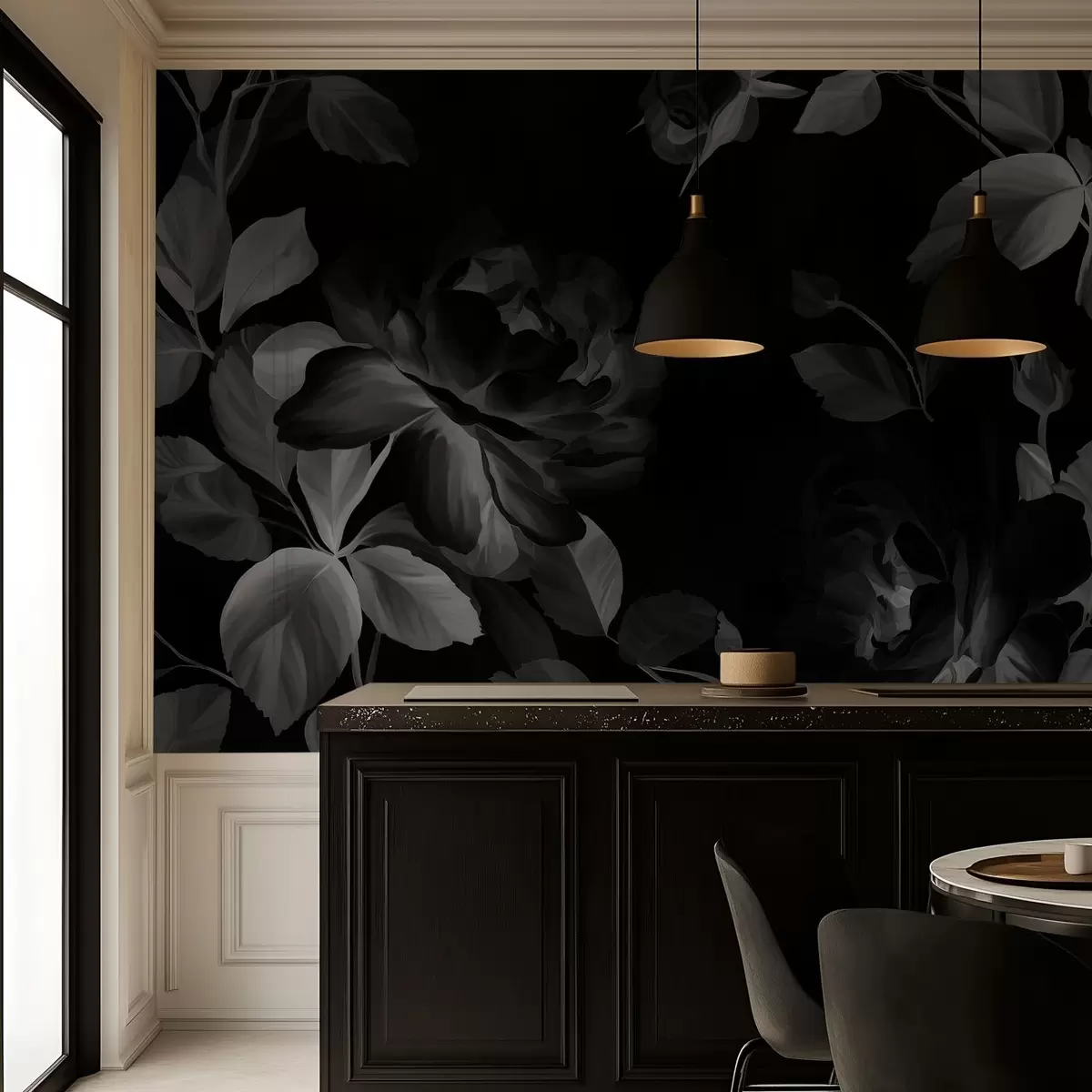 Murais de parede rosas pitorescas em preto e branco no estilo de pintura a óleo Nr. w04873v1