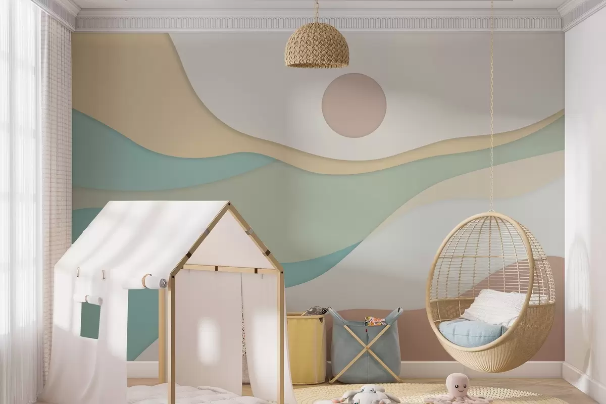 Murais de parede Abstração minimalista com formas suaves e onduladas que lembram paisagens fluidas e dunas. Nr. w04874