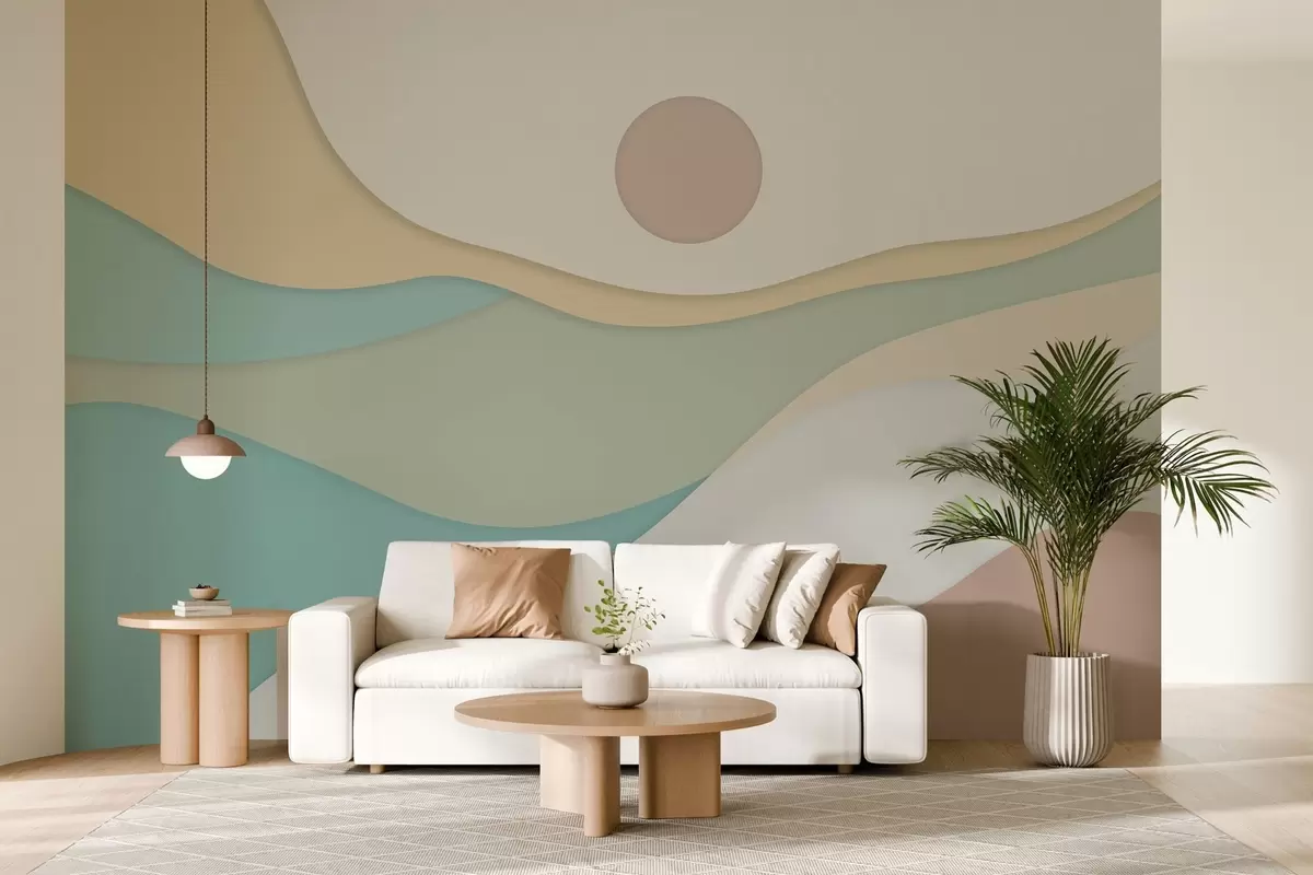 Murais de parede Abstração minimalista com formas suaves e onduladas que lembram paisagens fluidas e dunas. Nr. w04874