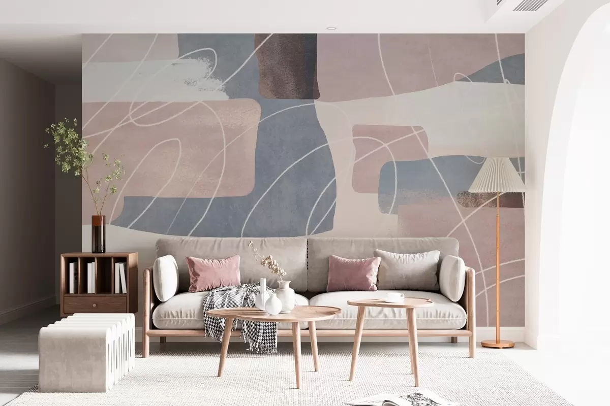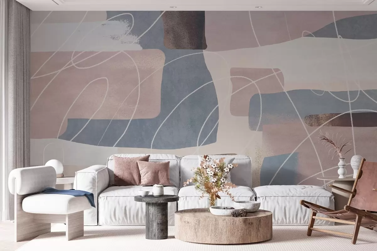 Murais de parede abstração moderna em tons de rosa pálido, cinza-azulado, bege e marrom Nr. w04877