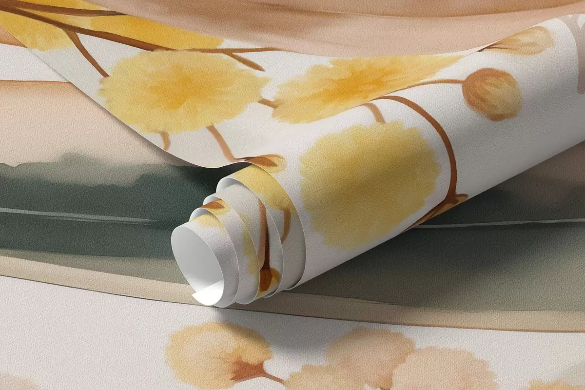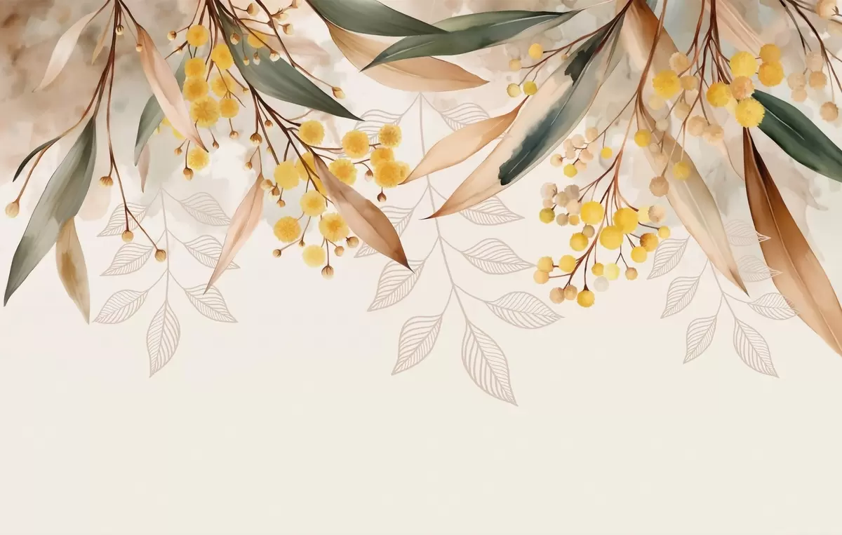 Murais de parede flores e folhas de mimosa caindo do alto em estilo aquarela Nr. w04880