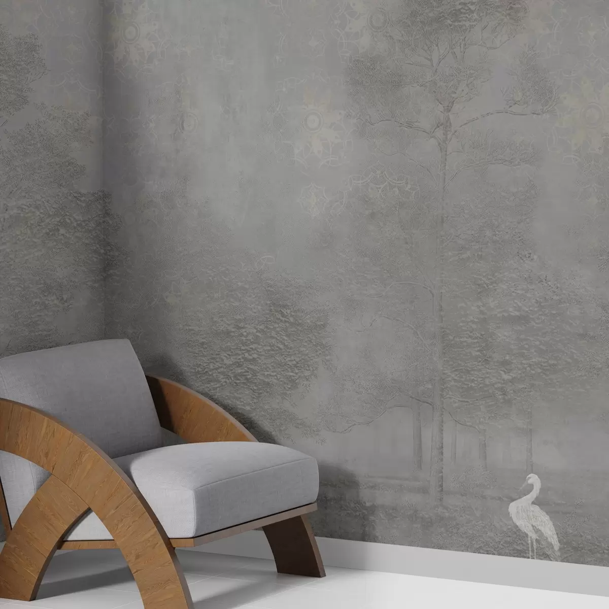 Murais de parede Floresta leve e enevoada com uma garça em tons frios de cinza Nr. w04953v2
