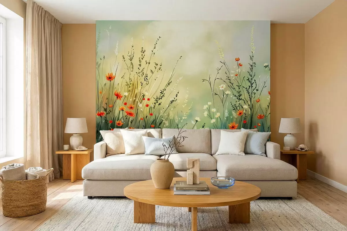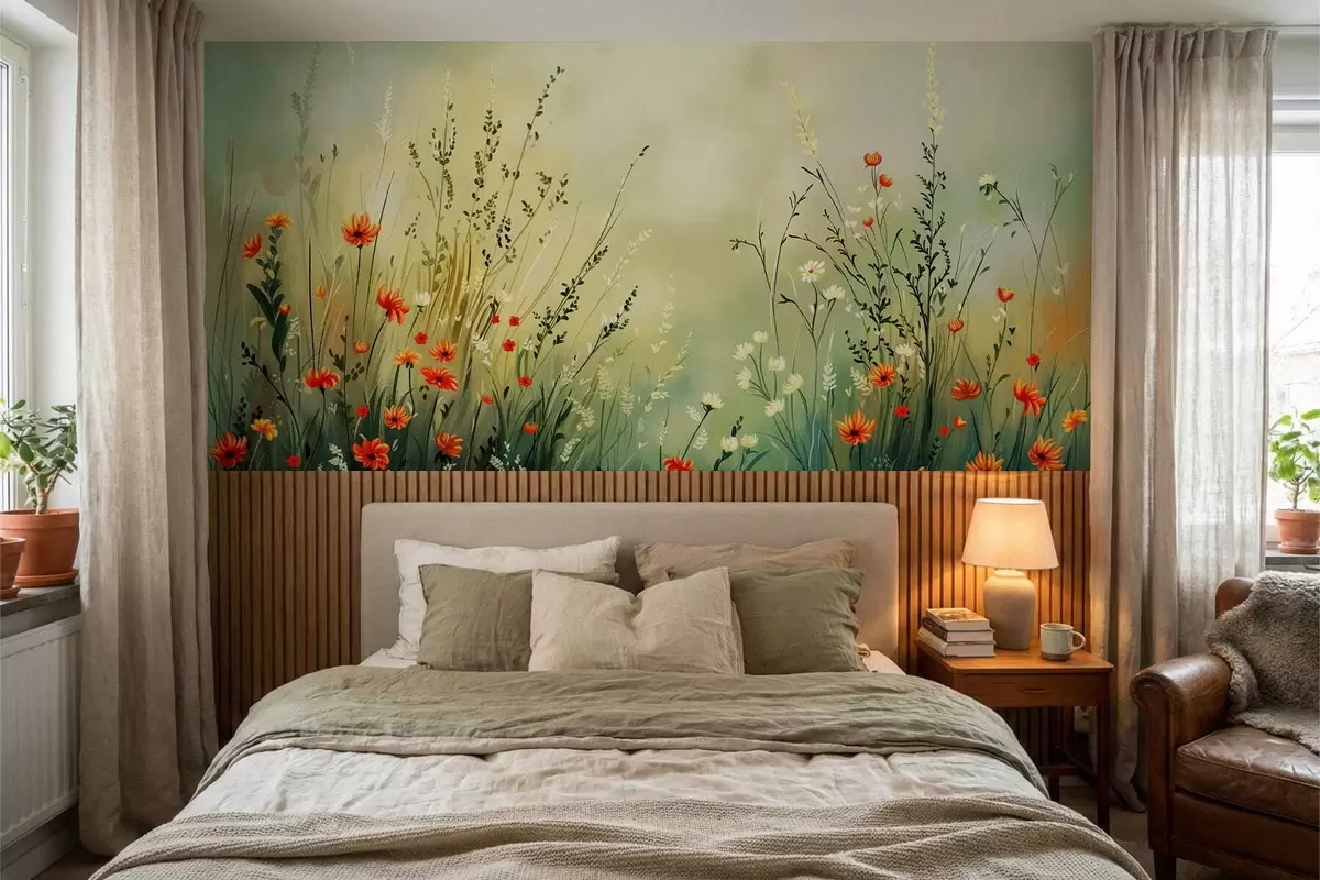 Murais de parede Flores e gramíneas do campo em estilo pictórico suave Nr. w05015