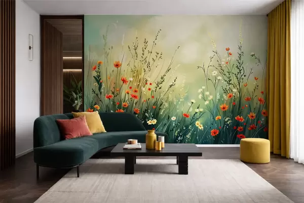 Murais de parede Flores e gramíneas do campo em estilo pictórico suave Nr. w05015