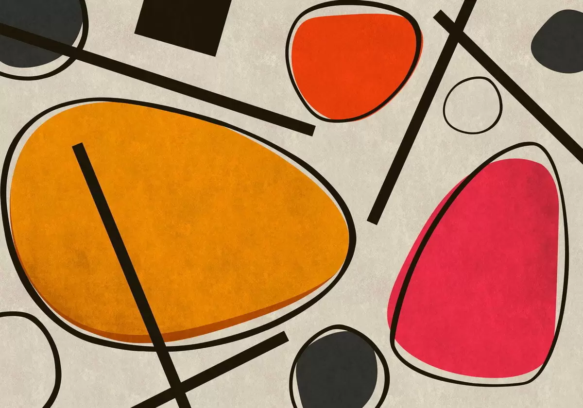 Murais de parede Formas abstratas e linhas com campos de cores fortes Nr. w05017