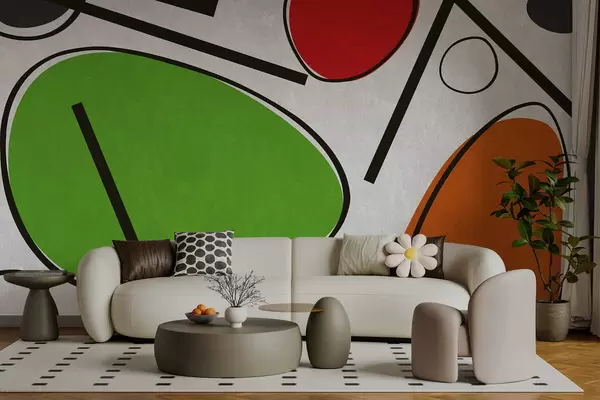 Murais de parede Formas geométricas abstratas com linhas e áreas de cores fortes Nr. w05017v1