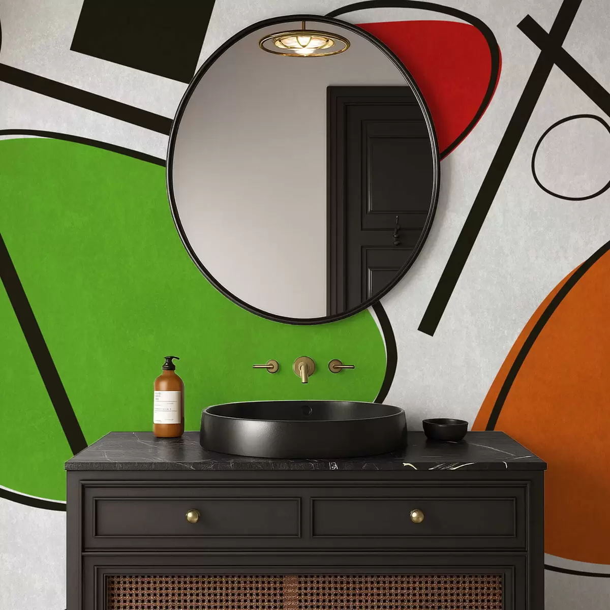 murais de parede Formas geométricas abstratas com linhas e áreas de cores fortes w05017v1