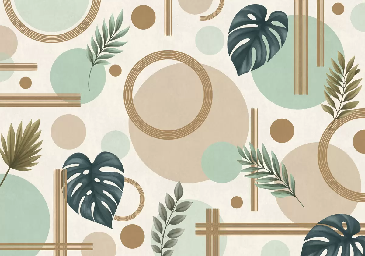 Murais de parede Padrão geométrico com folhas em tons de verde Nr. w05018v1