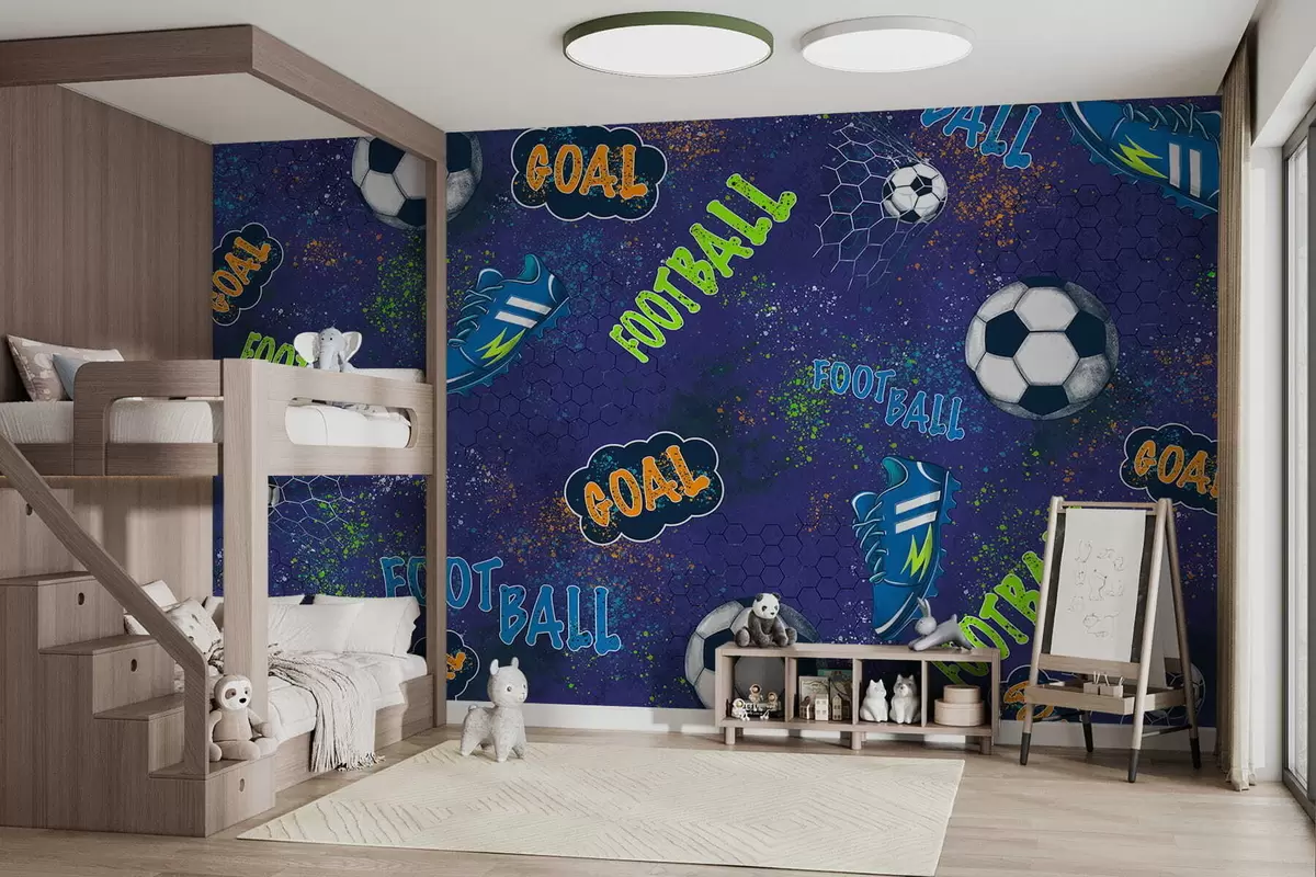 Murais de parede Padrão de futebol infantil em tons de azul escuro Nr. w05037v3