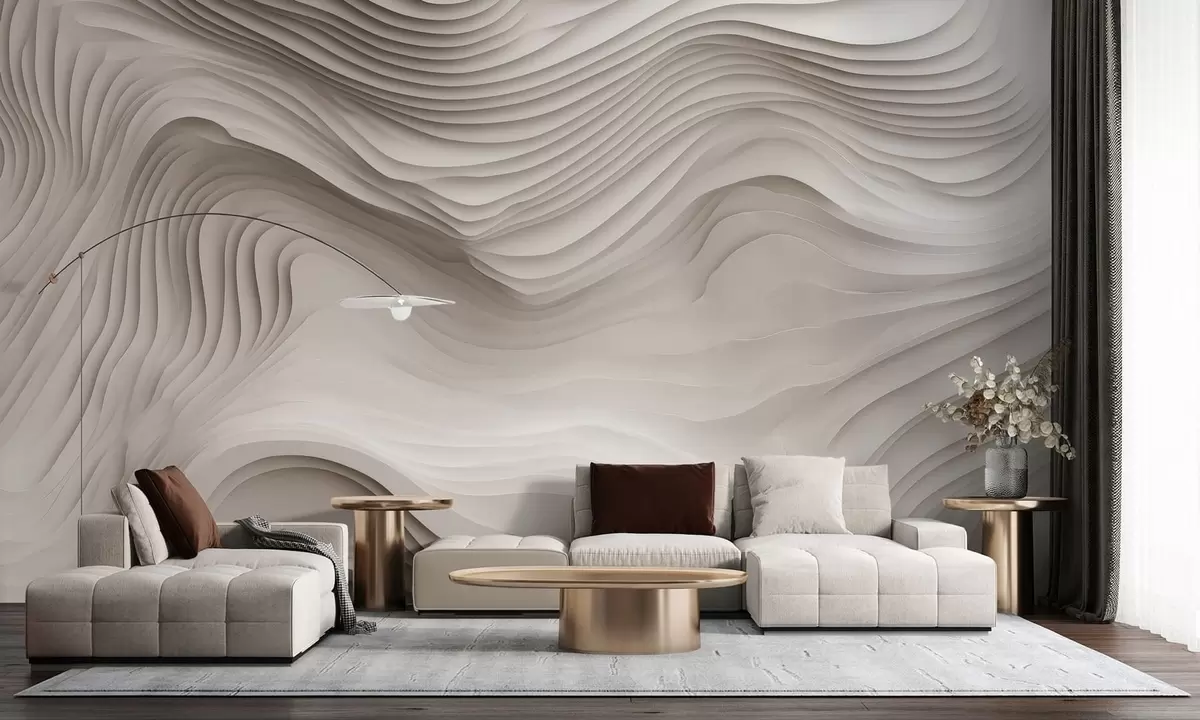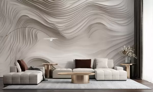 Murais de parede imitação de relevos volumosos em tons de bege Nr. w05061v1