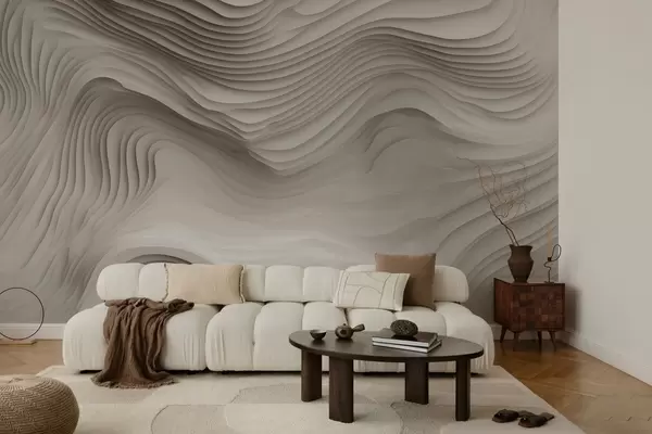Murais de parede imitação de relevos volumosos em tons de bege Nr. w05061v1