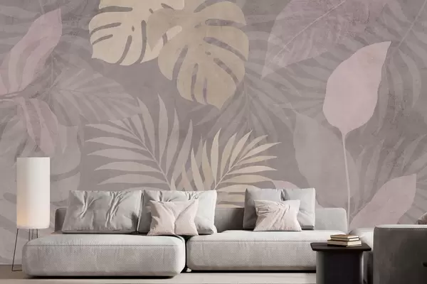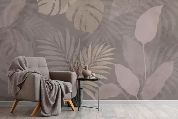 Murais de parede folhas tropicais texturizadas sobre fundo cinza Nr. w05063v1
