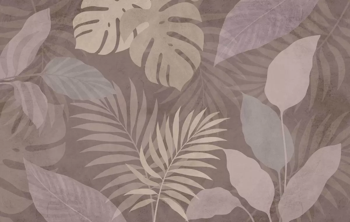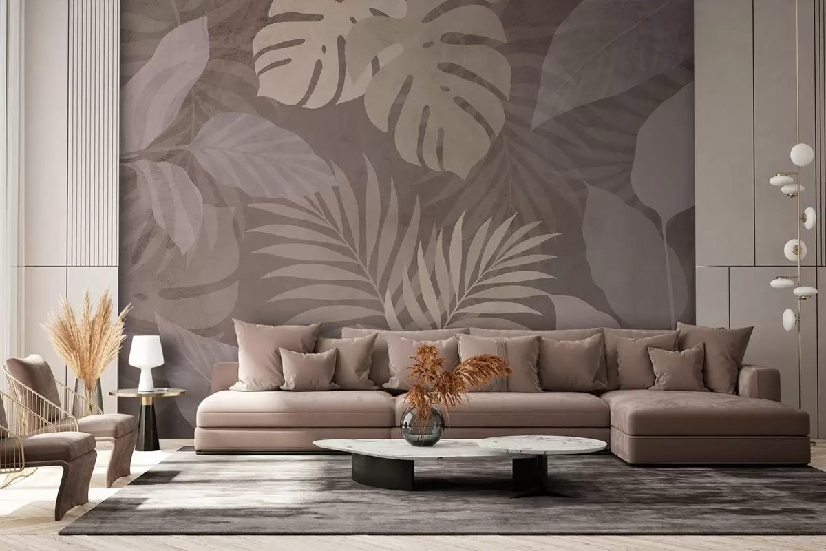 Murais de parede folhas tropicais texturizadas sobre fundo chocolate Nr. w05063v2