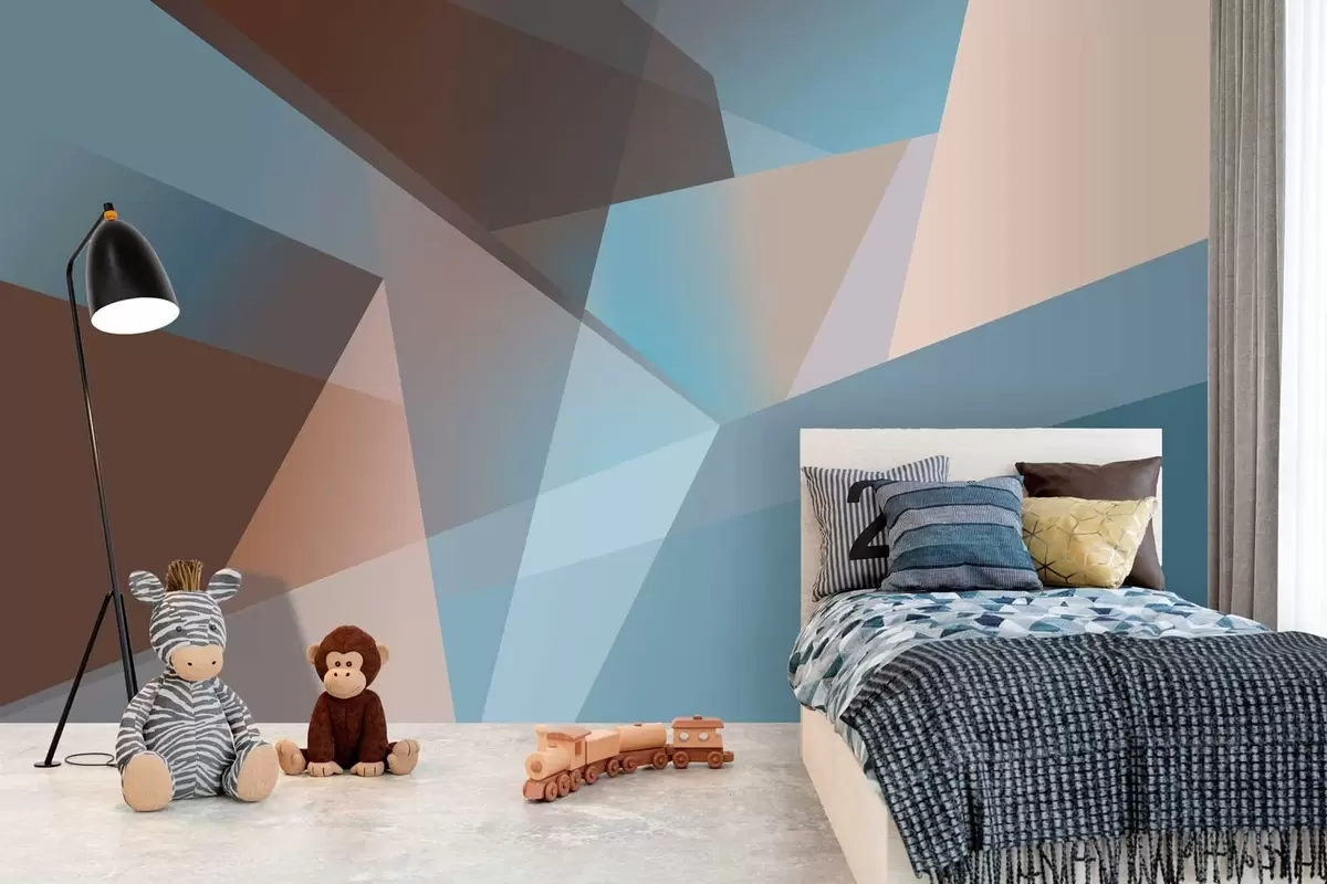 Murais de parede geometria abstrata em tons de azul e marrom Nr. w05064