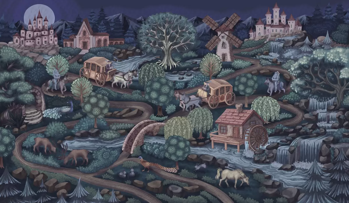 Murais de parede Cena noturna com castelos, moinhos e floresta Nr. w05091