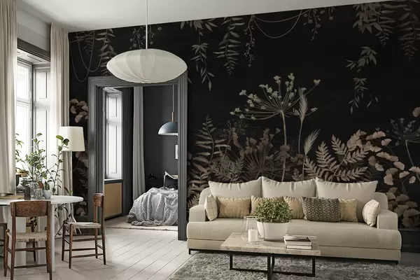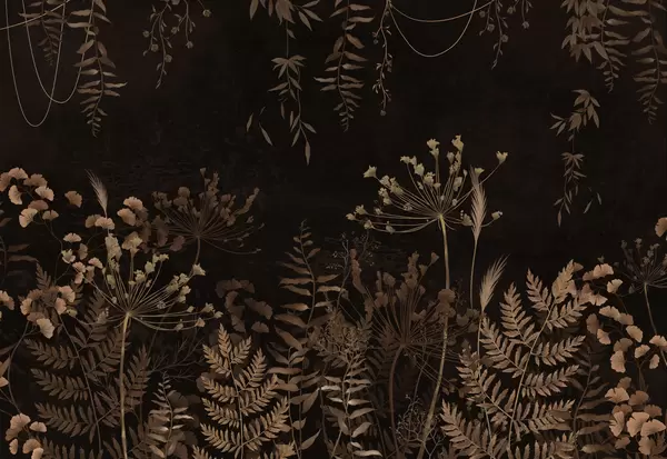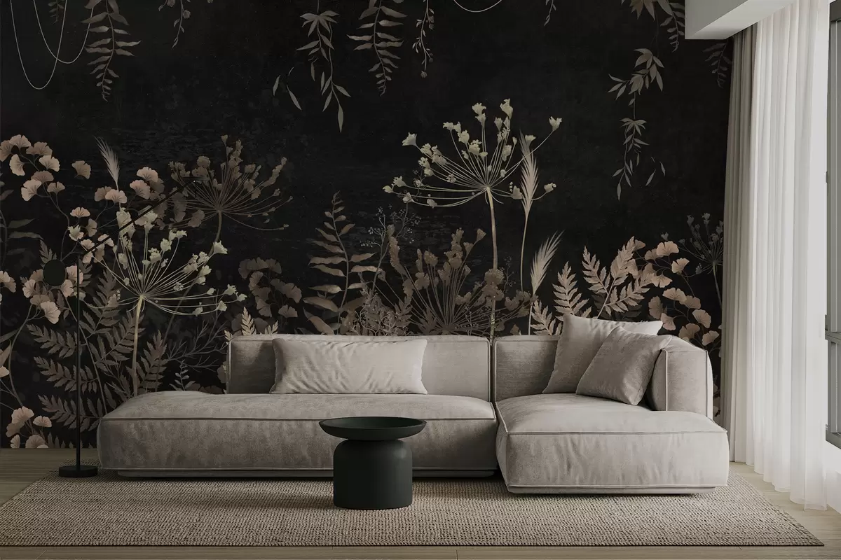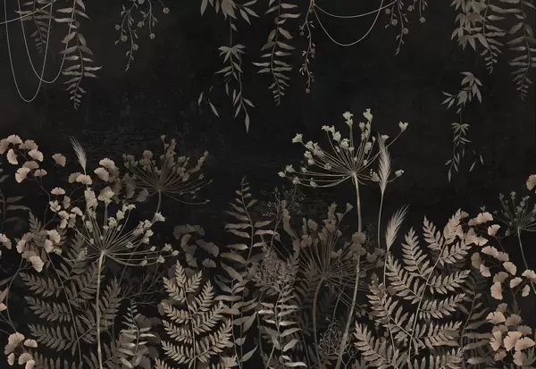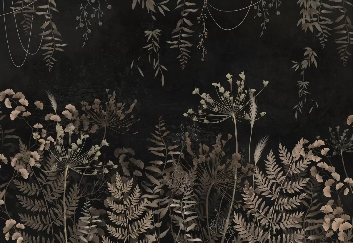 Murais de parede Padrão botânico escuro com flores e folhas Nr. w05092